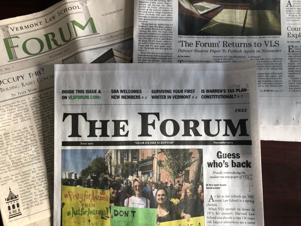 The Forum will also serve as a platform for thought-provoking student and faculty work. VLS students hail from a diverse array of backgrounds; in any given room, you could find a community organizer, an ornithologist, a painter, and a public school teacher. Their perspectives make us all richer.