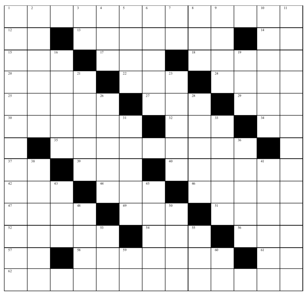 24. Following 58 Across, forms a pattern commonly seen in academic fashion