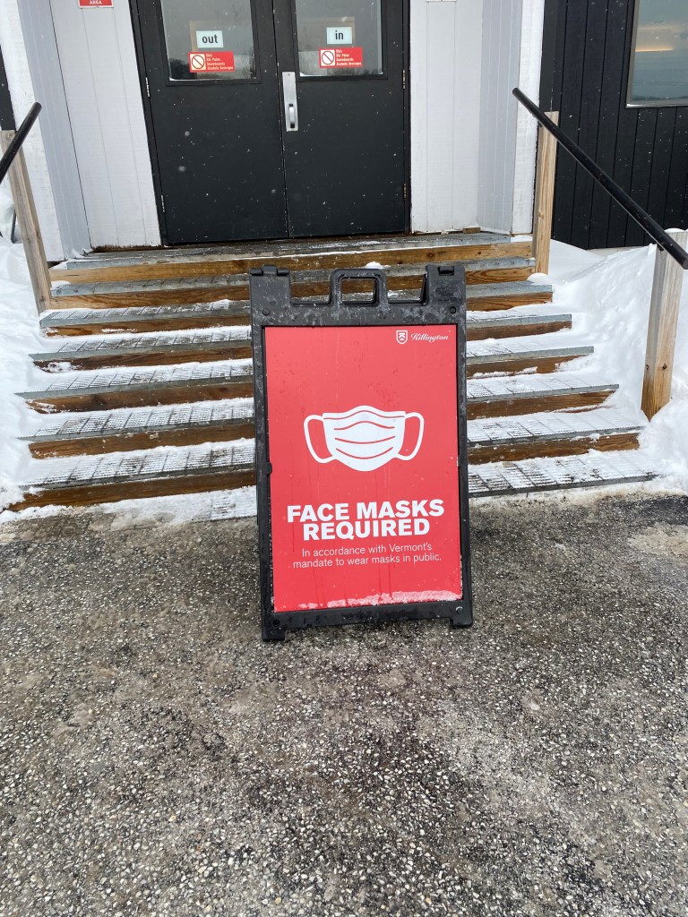 On the mountains, face coverings are required. On Killington, guests can hear an auditory reminder to keep masks on. Repeating “The Beast [a nickname for Killington Mountain] thanks you for wearing your mask. Unless you’re wearing it like a chinstrap or your nose is hanging out. Then The Beast is disappointed in you. Don’t disappoint the Beast.” Another reminder Killington has both auditorily and on their website is “Shred it, don’t spread it.”