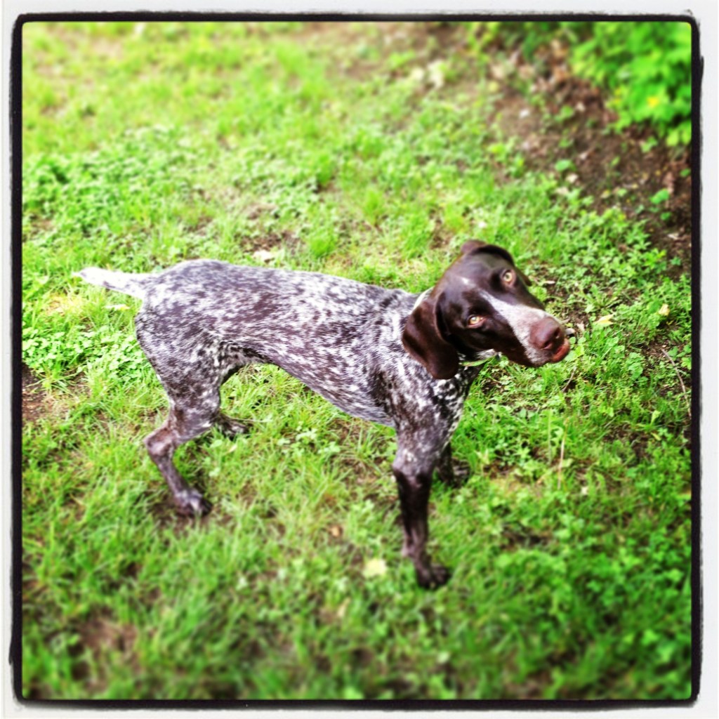 Delphi is a German Short-Haired Pointer and she joined my family in 2010, while I was a student at Vermont Law School. Delphi is a pack animal! She loves to be with her pack (my family) at all times. When we are inside, she stays in whatever room we are in. When we are outside, she is right at our side. When we sleep, she is on the foot of the bed. She is fiercely loyal and amazingly protective. Since we moved to New Hampshire she has chased off turkey, coyotes, deer, and even bear (true story). Delphi’s only drawback is that she can’t be left alone with the chickens when they are free-ranging (not even for a second).