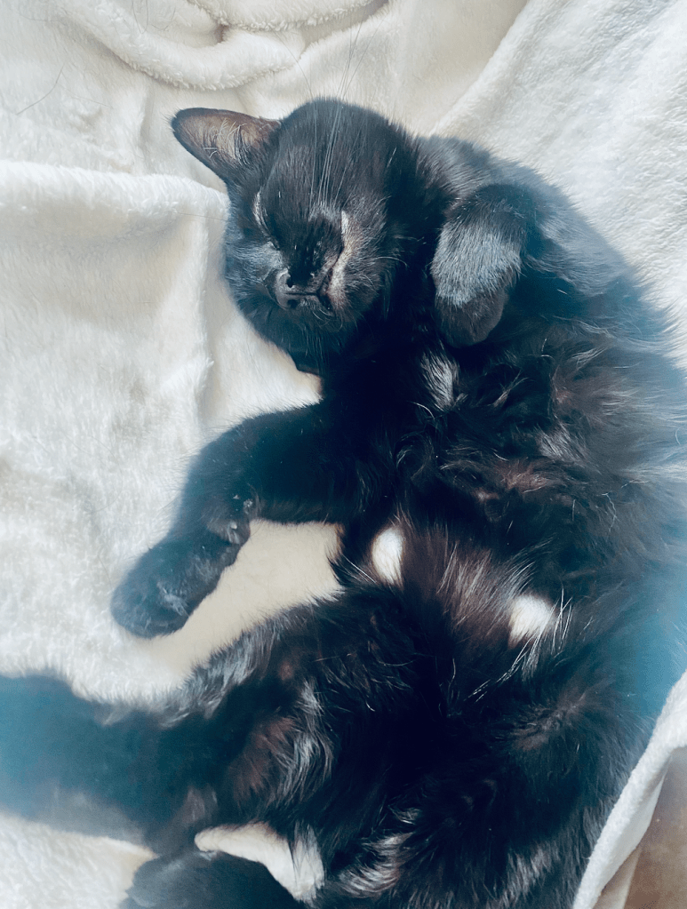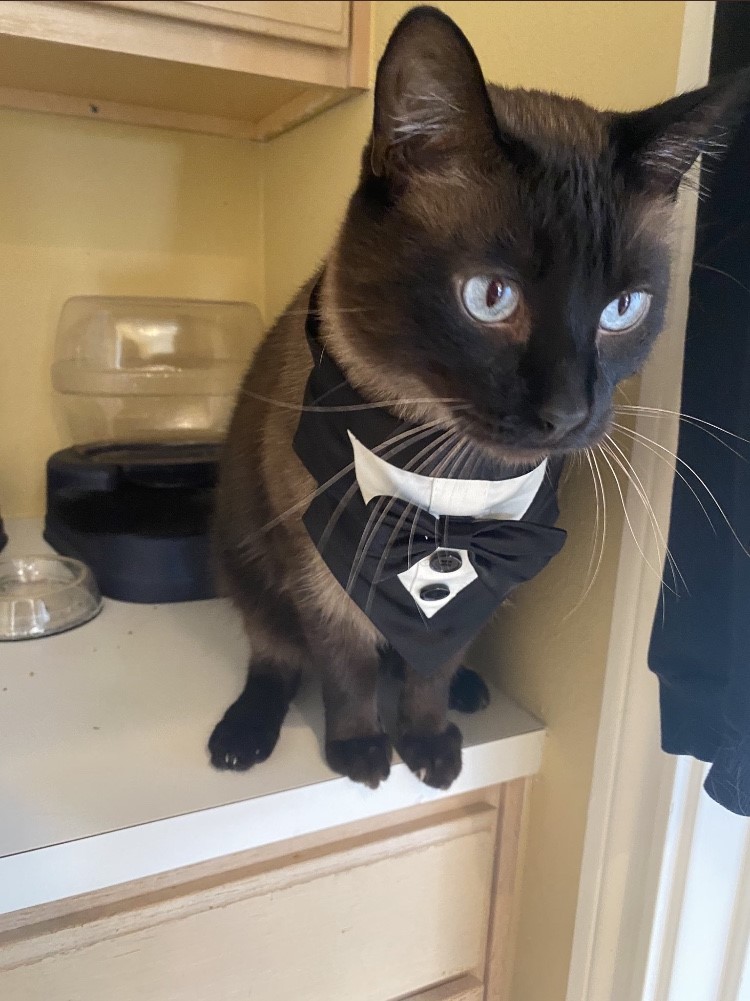 Hi, I’m Sylvester, but everyone calls me Svesty. I’m a 4-year-old Maine Coon mix who is always ready for a dinner party (hence the tuxedo). My momma rescued me from a barn where I was abandoned, and with lots of love and doctor’s visits I’m doing great! My vet says I have kitty autism, but that just makes me even more fun to be around! I get to spend time with lots of cool people like my aunties Arielle and Kayley, plus uncle Jerry. Uncle Jerry says I have no boundaries, but tu casa es mi casa, right?! Plus, I’m cute. I love everyone and everything, but especially food! TREATS? Heck yeah! Ham? You bet! Butter? My favorite! I have two siblings, Cleo and Odin. They’re cool, but they have some sort of twin telepathy so I spend a lot of time by myself. I love spending time outside! I’m pretty scared of wind, but I enjoy climbing trees, although sometimes I forget how to get back down. Oh well, that’s what moms are for, right? Also, whenever I catch squirrels they end up running away. I just want to play! My all-time favorite thing is just being the coolest cat around since I’m pretty good at that 😊