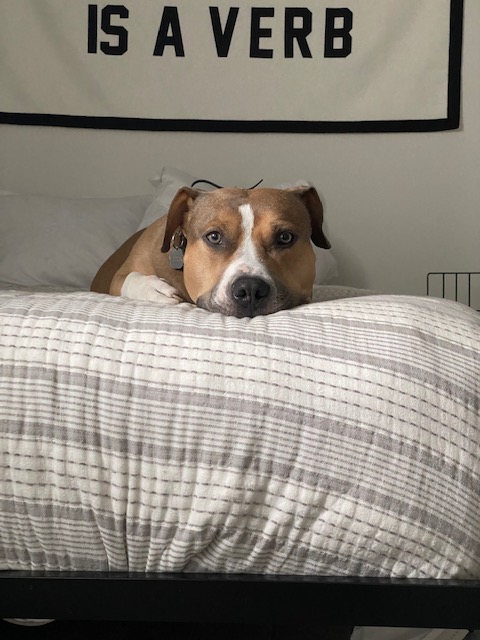 George is a rescue pup who has been with me for the last five years. In our five years together, George has become an avid hiker, brewery-goer, law school emotional support animal, and friend of all the pups in SoRo. George has loved every second of quarantine as he gets to spend all his time with his two humans with frequent walks to the beach!