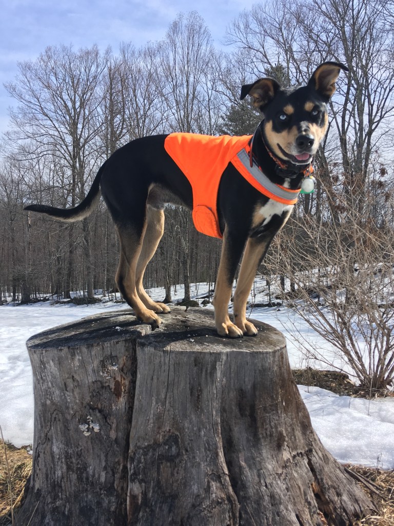 HELLO, my name is Alpine. I am a 3-year-old Coonhound Pointer mix. My personality is serious but funny and goofy. My owner adopted me from New Jersey, but I was found in Georgia. Living in Vermont has been a big change. I love my long hikes on the weekends and going on runs with my owner. I enjoy my overnight long camping trips because I get to be outside. In Vermont, I also experienced snow for the first time and I loved it so much. I am also notorious for looking out my window and the green. I love food. My favorite snack is Bully Stick’s and Greenies.