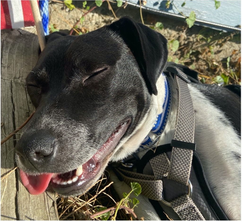 A rescue from Texas, Banner (full name, Banner Frodo Baggins Sharkface Dingus Dunn) quickly won over his adopted parents’ hearts with his endearing overbite, obsession with chuck-it balls and propensity to snore louder than would seem possible for a dog his size. Banner loves going for long trail runs and hikes, snoozing in his beloved bean bag, bossing around dogs much bigger than he is and interrupting Molly’s Team’s meeting by randomly singing the song of his people at full volume. Dislikes include baths, being checked for ticks and not being allowed up on the couch when his feet are wet. Banner is looking forward to getting out and exploring new trails this summer and most definitely not making friends with any skunks.
