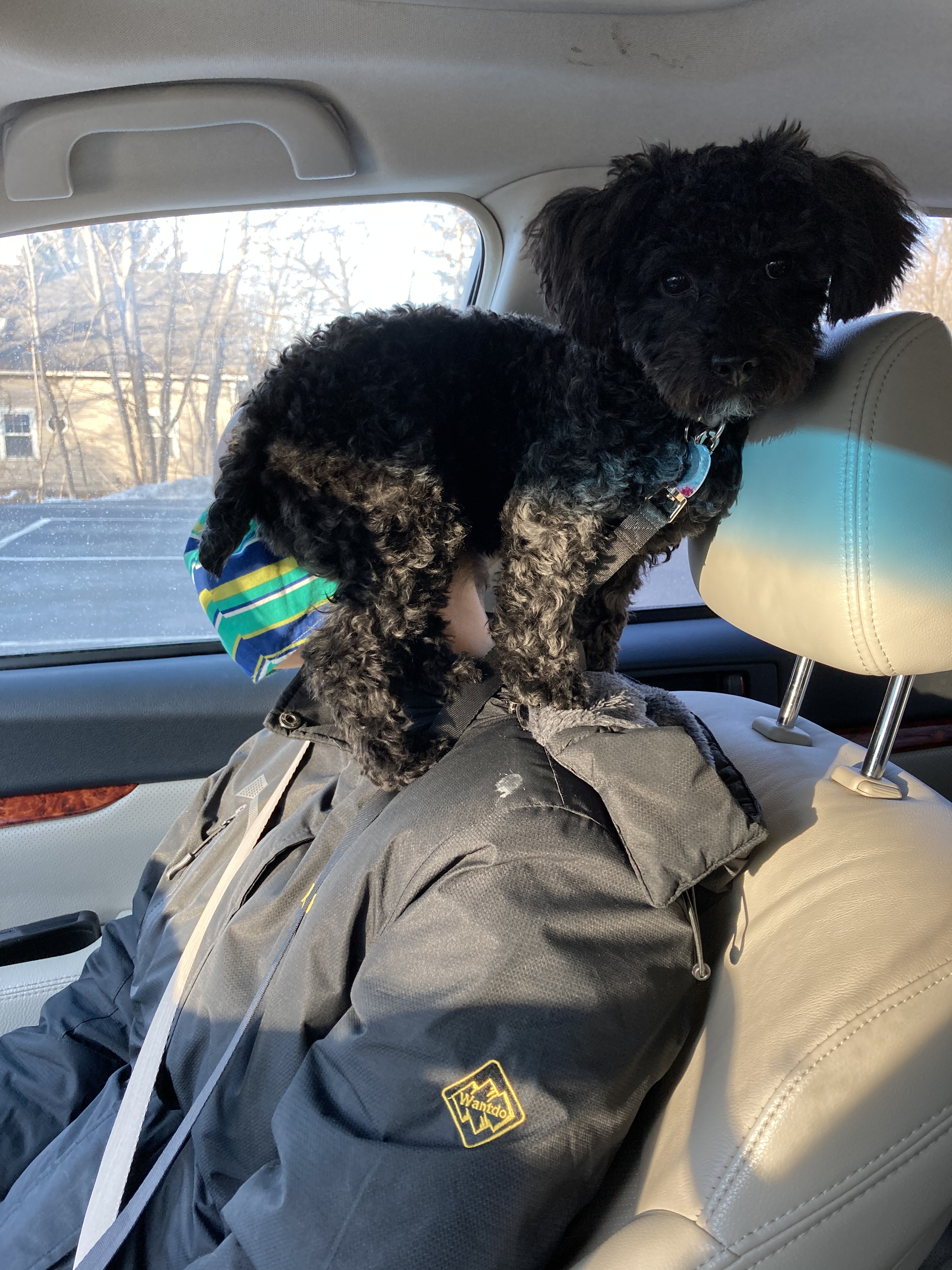 This is Fawkes! She was briefly the poster pup for Barristers Bookstore. She was featured eating a VLS frisbee. Her nickname is “Shredder” because she once shredded a box of Physics papers. She loves to catch snowballs, and do almost anything Jingo does. She is a Schipperke/(likely) corgi mix, and partially made of springs as she can jump almost anything. Worst/best of all she can climb virtually anything, and I have found her high up in the branches of trees. She also attends board meetings, environmental stewardship campaigns, and goes everywhere Jingo does. She is also the aww-factor in everything we do, and everywhere we go. She also loves to argue with me…